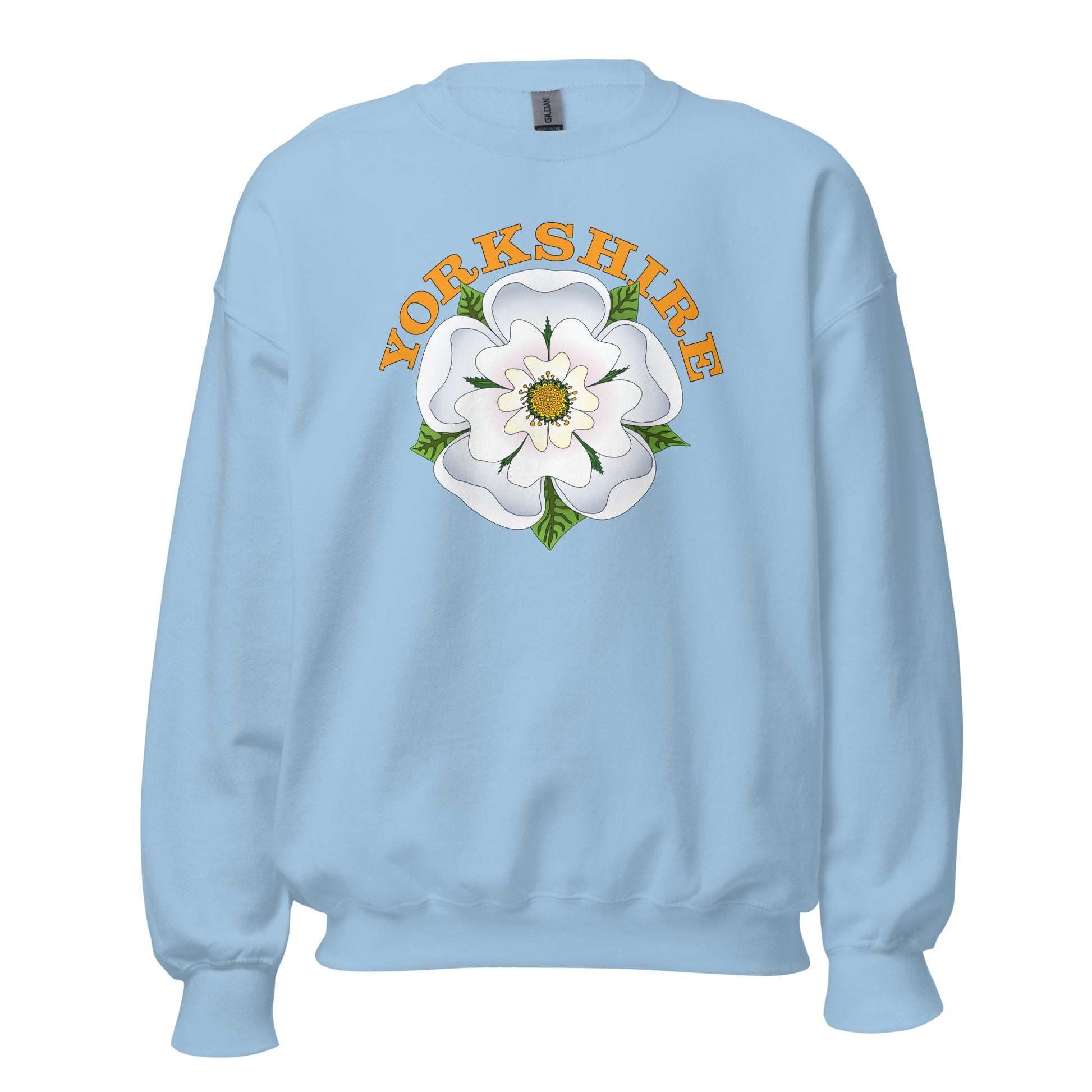 Lovely warm Yorkshire rose sweatshirt, with a white rose design by Yorkshire Stuff.